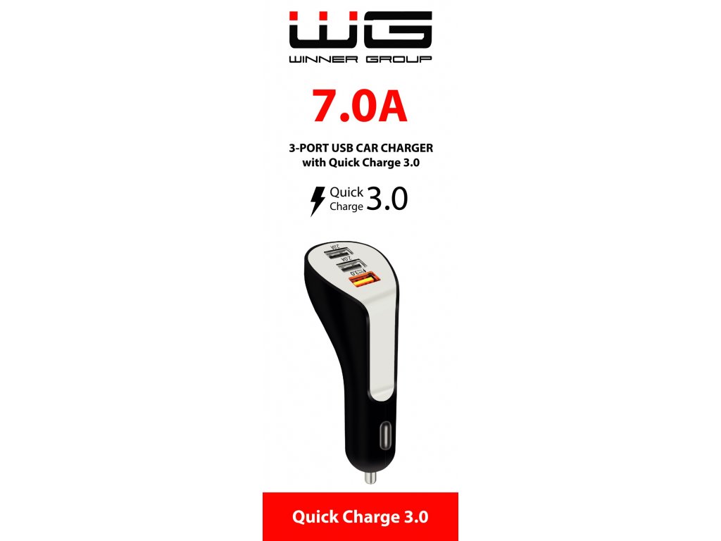 Univerzální autonabíječku využijete při nabíjení telefonu či tabletu během cesty autem. Nabíječka disponuje 3 výstupními porty USB–A, zvládne tak nabíjet tři zařízení současně. Celkový maximální výstupní proud 7,0A. Je kompatibilní se všemi zařízeními, které mají nabíjení přes USB a kabel pro nabíjení s daným zařízením. Nechybí také podpora rychlého nabíjení QC 3.0.