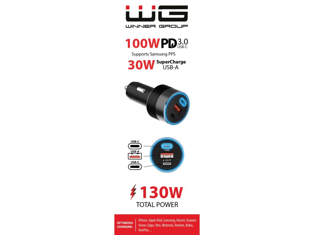 Autonabíječka Total Power 130W (Power Delivery 3.0 100W, Quick Charge 3.0 30W) v elegantním černém provedení je výkonným řešením pro rychlé a efektivní nabíjení vašich zařízení během cest. S celkovým výkonem 130W a dvěma pokročilými nabíjecími porty zvládne nabíjet notebooky, tablety, smartphony i další elektroniku bez jakéhokoliv kompromisu na rychlosti nabíjení.