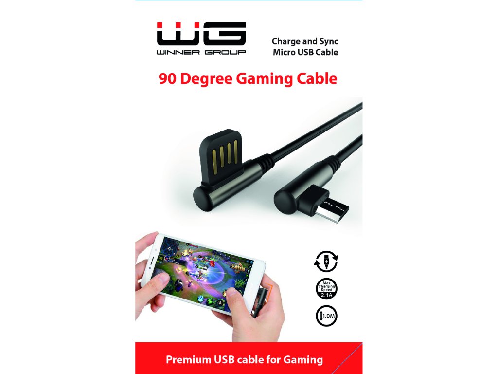 Datový herní kabel USB-A 90° x Micro USB 1m 2.1A - černý