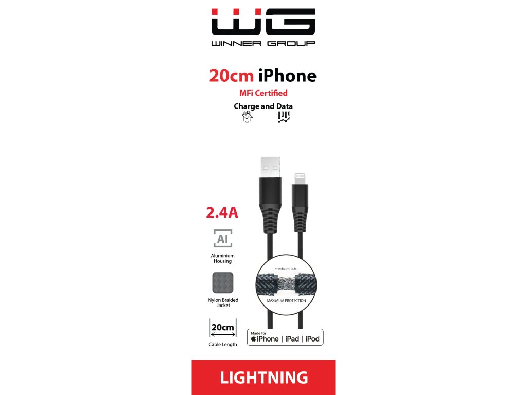 Datový kabel USB-A x Lightning MFI 0,2m 2.4A - černý
