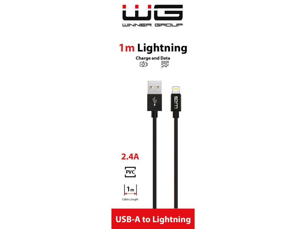Datový kabel USB-A x Lightning 1m 2.4A - černý