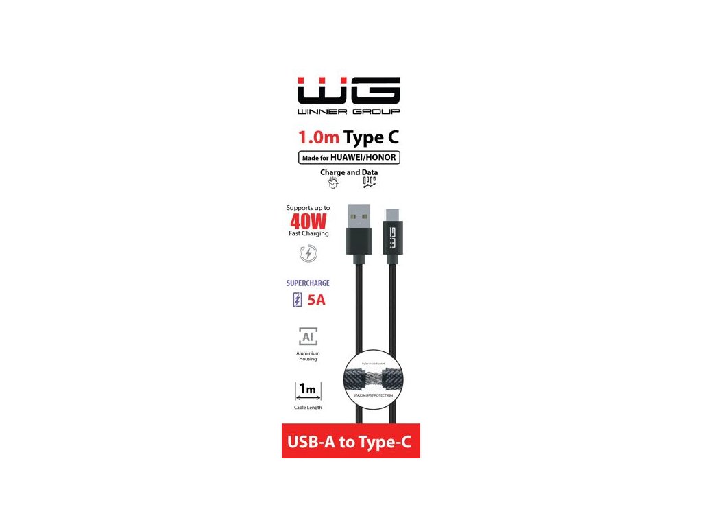 Prémiový nabíjecí a datový kabel značky Winner Group, určený zejména pro zařízení HUAWEI a HONOR. Podporuje technologii rychlého nabíjení SuperCharge až 40 W a vysoký proud 5 A, díky čemuž je ideální pro maximálně rychlé doplnění energie.