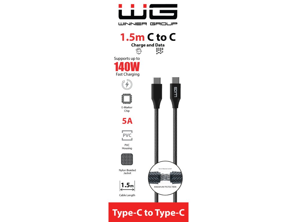 Datový kabel USB-C x USB-C 1,5m 140W - černý