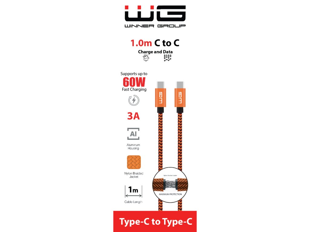 Datový kabel USB-C x USB-C 1m 3A - oranžový