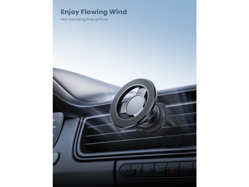 Stylový, výkonný a praktický držák do auta pro všechny fanoušky jednoduchosti a funkčnosti. Magnetický držák je navržen pro rychlé a bezpečné uchycení telefonu během jízdy. Díky silnému magnetu, otočnému kloubu a přiloženému kovovému kroužku nabízí skvělou stabilitu a pohodlí bez nutnosti složitého nastavování.