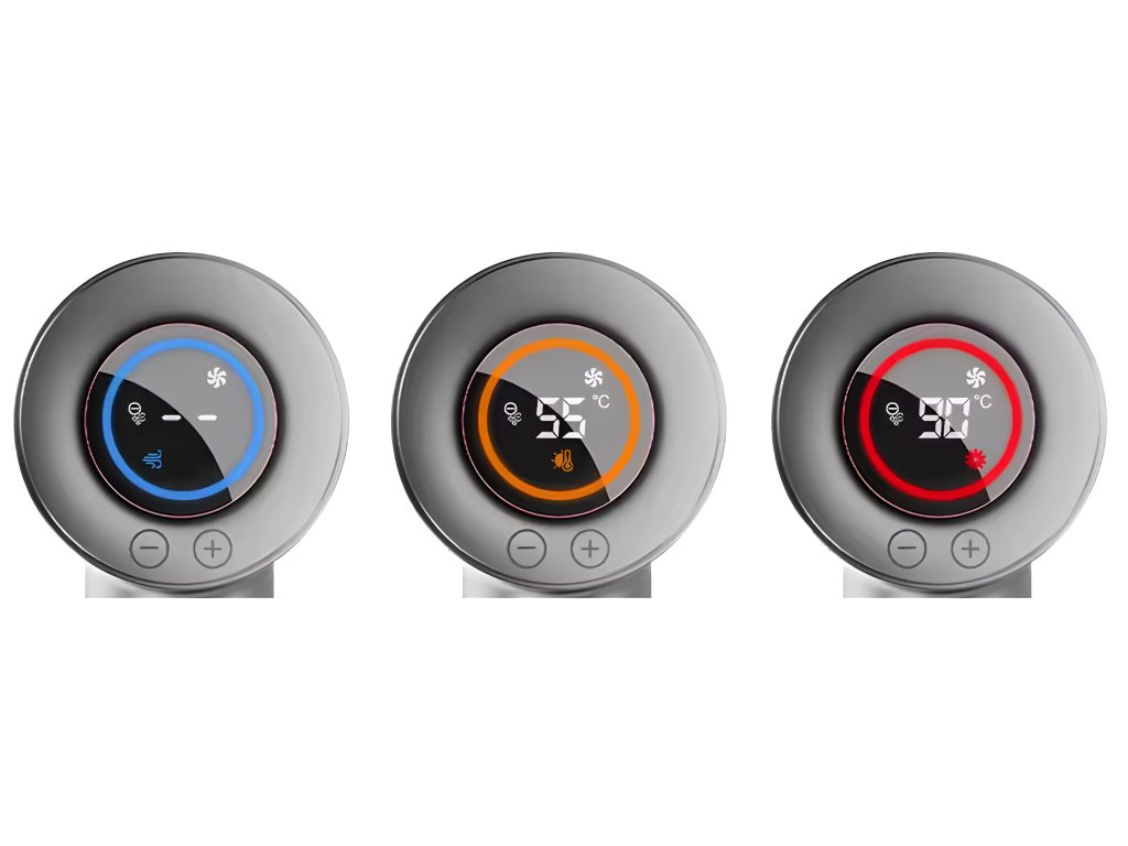 - Digitální displej – jasné a přehledné zobrazení teploty a režimu foukání
