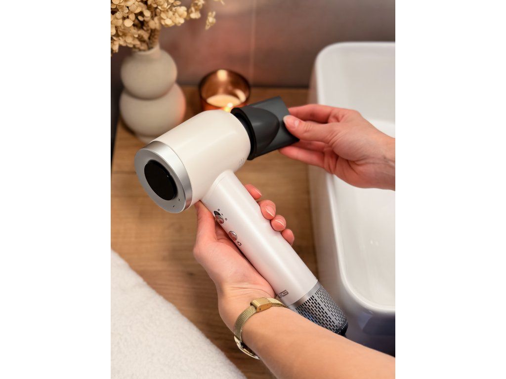 - Nízká hlučnost – vysokorychlostní bezkartáčový motor s redukcí hluku (max. 75 dB) pro rychlé a efektivní sušení vlasů