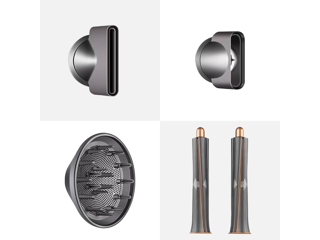 - 2× obousměrné Airwrap nástavce - dvojice nástavců pro natáčení vlasů ve dvou směrech, využívá proud vzduchu pro jemné tvarování bez extrémního tepla, vhodné pro vytváření vln a kadeří
