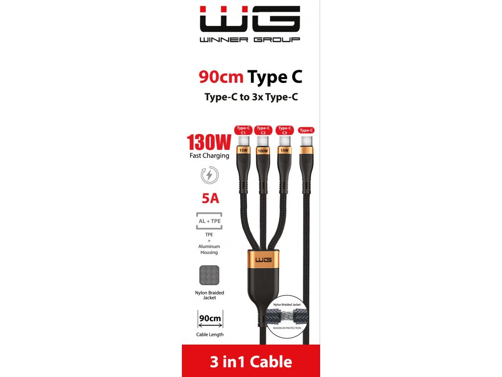 Kabel do transmisji danych 3w1 USB-C x 3x USB-C 0,9m 130W - czarny