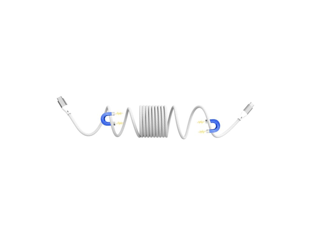 Elegancki i trwały magnetyczny kabel z funkcją samonawijania do szybkiego ładowania i przesyłu danych. Dzięki złączom USB-C na obu końcach oraz obsłudze mocy 60W (3A) jest idealnym wyborem dla nowoczesnych urządzeń wymagających szybkiego i stabilnego zasilania.