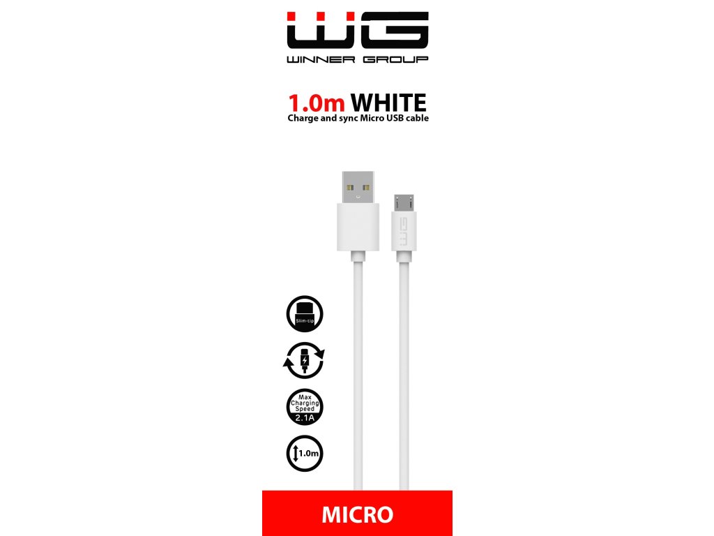 Kabel do transmisji danych USB-A x Micro USB 1m 2.1A - biały