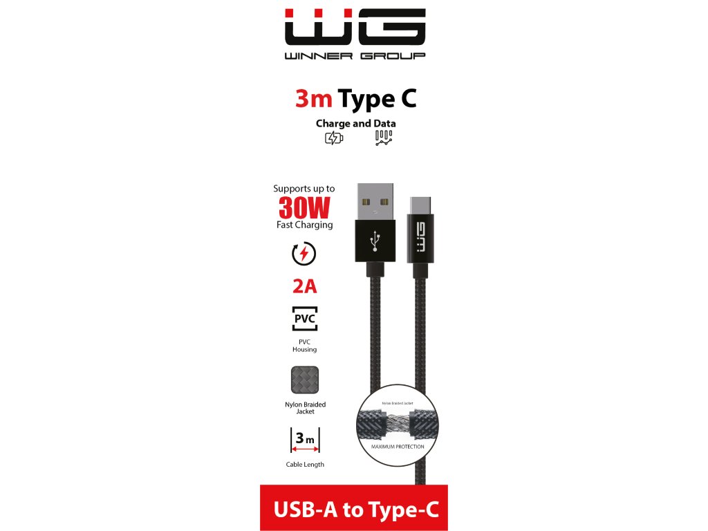 Kabel do transmisji danych USB-A x USB-C 3m 30W - czarny