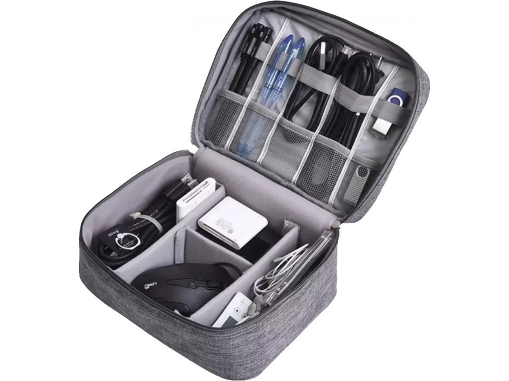 Praktyczny design – Etui zawiera wiele przegródek, które pomagają utrzymać porządek i bezpiecznie przechowywać kable, ładowarki, słuchawki, powerbanki, karty pamięci i inne akcesoria.