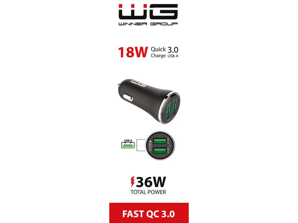Ładowarka samochodowa FAST 2xUSB 36W (2x QC 3.0) (Czarna)