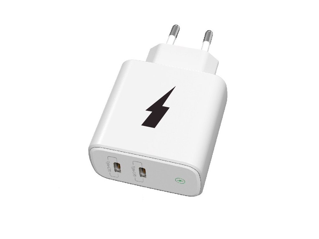 Síťová nabíječka s dvojitým USB-C portem je ideálním řešením pro rychlé a efektivní nabíjení více zařízení současně. Tato nabíječka nabízí celkový výkon až 40W a podporuje technologie Power Delivery (PD), což zajišťuje rychlé nabíjení pro širokou škálu zařízení, od smartphonů až po tablety a notebooky.
