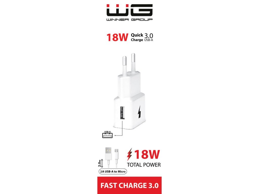 Ładowarka sieciowa FAST 1x USB 15W + kabel Micro USB - biała