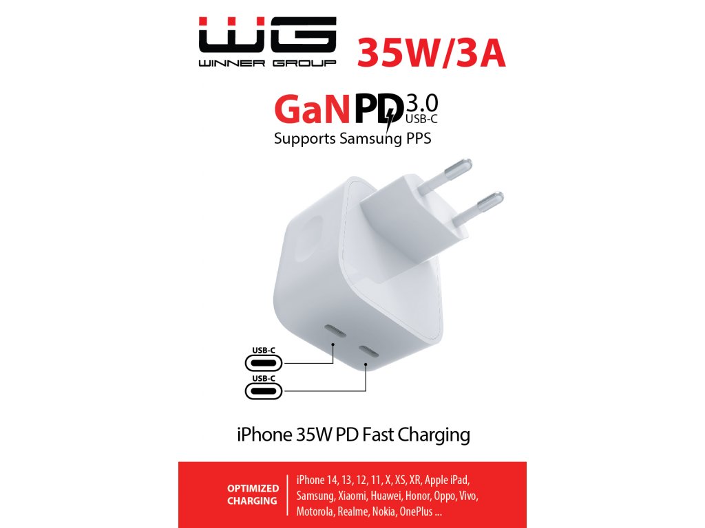 Kompaktowa, wydajna i odporna na przegrzewanie ładowarka sieciowa GaN 35W. Dzięki podwójnym wyjściom USB-C oferuje szerokie możliwości zastosowania dla smartfonów, tabletów i innych urządzeń elektronicznych.