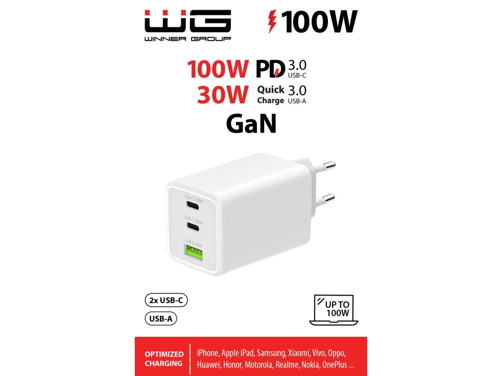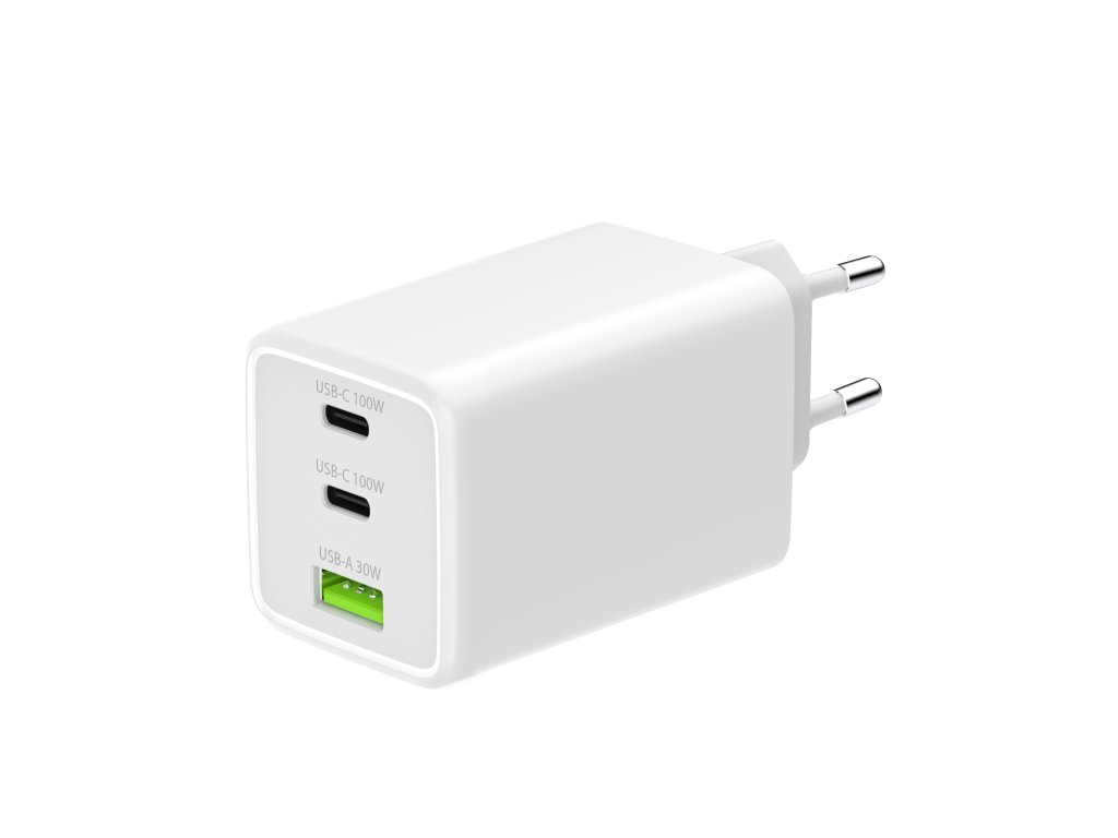 Ładowarka sieciowa GaN 3x USB 100W – biała