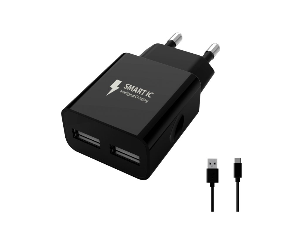 Ładowarka sieciowa Smart IC 2x USB-A 12W + kabel USB-C - czarna