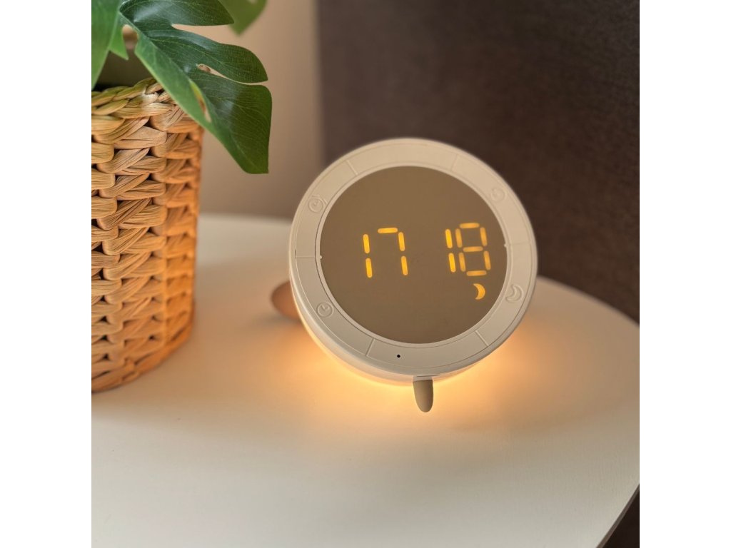 Oprócz oświetlenia, myszka oferuje również funkcję zegara i budzika. Na dużym, przejrzystym wyświetlaczu łatwo sprawdzisz aktualny czas, więc nie przegapisz na przykład wspólnego oglądania telewizji. Dla porannego wstawania, np. do szkoły, ustawisz dziecku alarm, który można raz odłożyć.