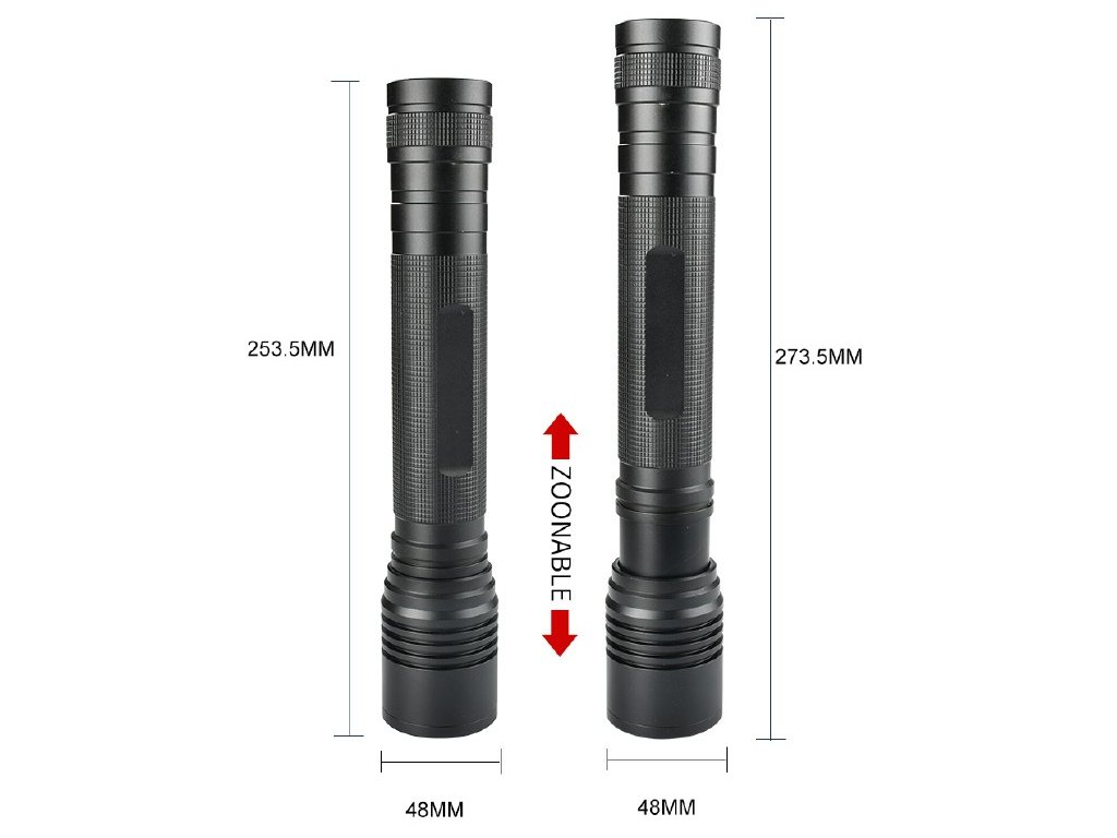 Funkcja Zoom - płynne ustawienie odległości ogniskowej światła daje możliwość przejścia od wąskiego, mocnego snopu światła o dużym zasięgu do szerokiego pola, które oświetli dużą powierzchnię. Dzięki tym cechom latarka jest idealna do każdego terenu.