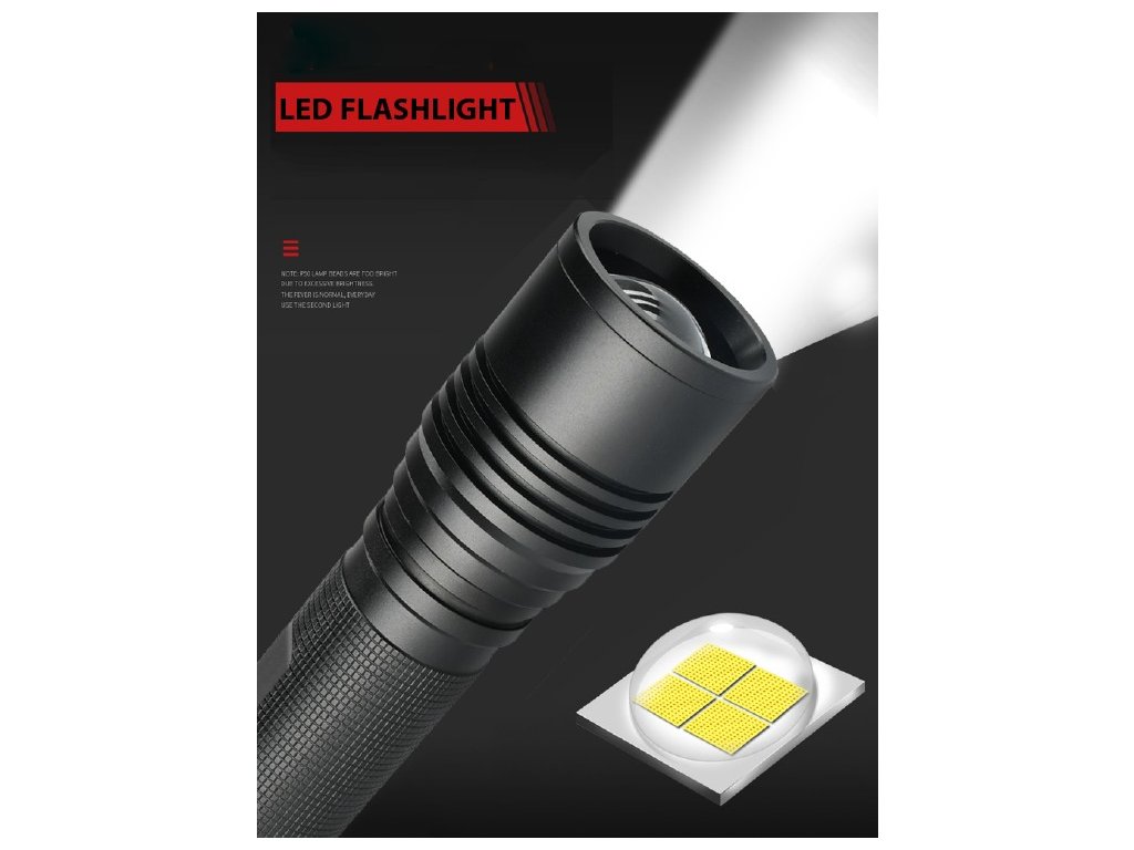 - Funkcje świecenia: 3 poziomy światła (mocny, średni, słaby), miganie, SOS.