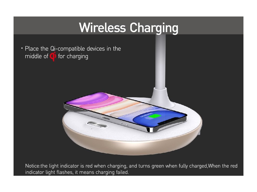 Lampa W21A została wyposażona w innowacyjną funkcję bezprzewodowego ładowania, która umożliwia wygodne ładowanie smartfonów i innych urządzeń. Wystarczy położyć urządzenie na podstawie lampy, aby rozpocząć ładowanie.