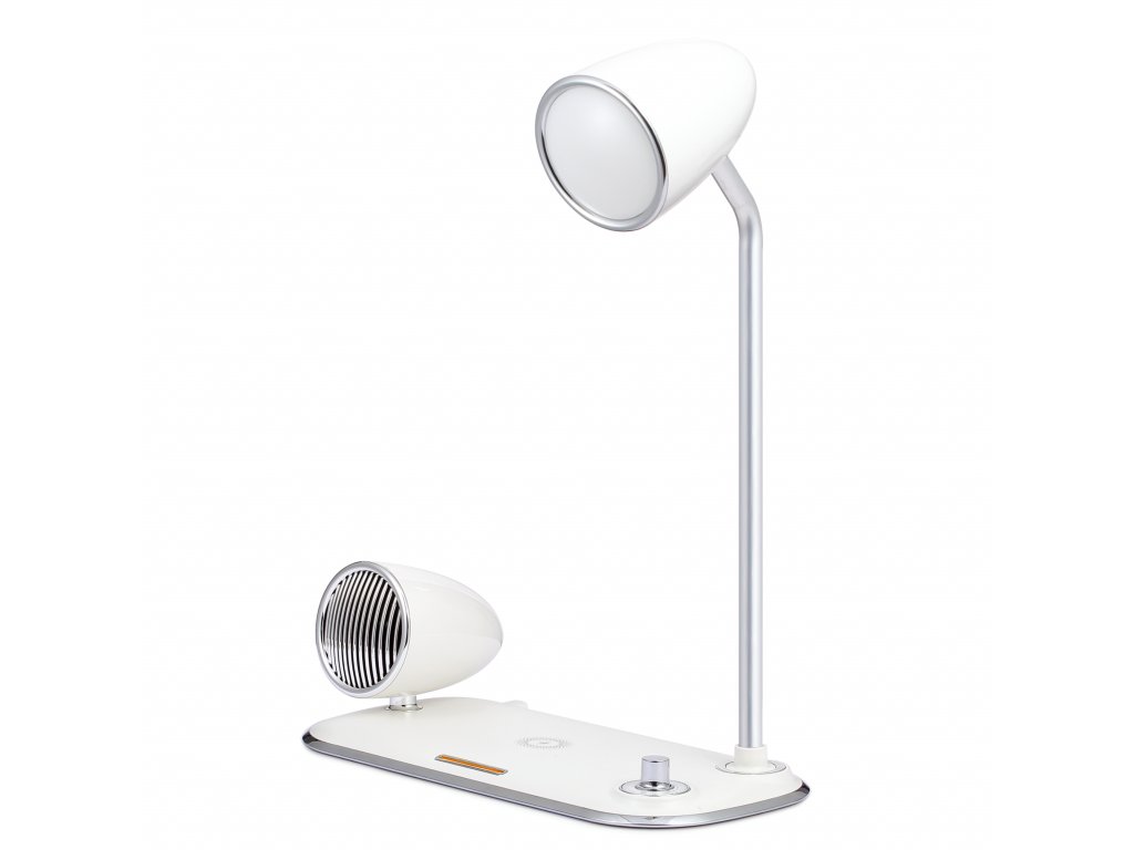 Led lampa z bezprzewodowym ładowaniem i głośnikiem bluetooth - biała