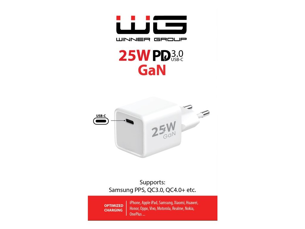 Sieciowa ładowarka GaN 1xUSB-C PD 25W+PPS