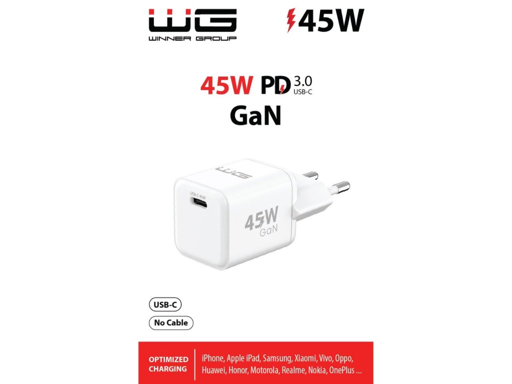 Ładuj swoje urządzenia szybko i efektywnie dzięki nowoczesnej ładowarce sieciowej GaN 45W. Dzięki zaawansowanej technologii GaN (azotek galu) ładowarka jest bardziej kompaktowa, lżejsza i wydajniejsza niż tradycyjne modele. Oferuje jeden port USB-C z obsługą Power Delivery 3.0 (PD) o mocy 45W oraz PPS (Programmable Power Supply), co zapewnia szybkie i bezpieczne ładowanie szerokiej gamy urządzeń – w tym tabletów i smartfonów.
