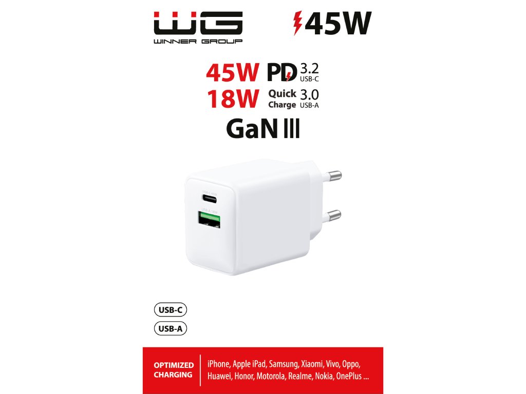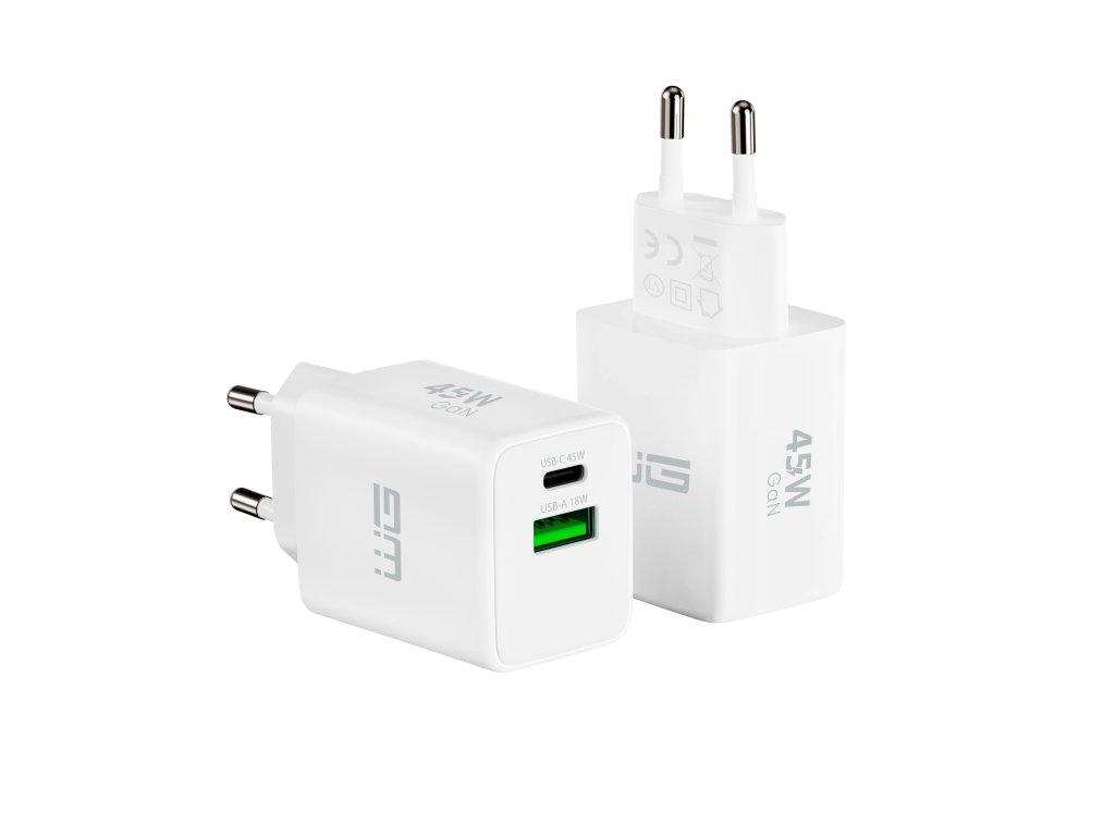Síťová nabíječka GaN 2x USB 45W - bílá