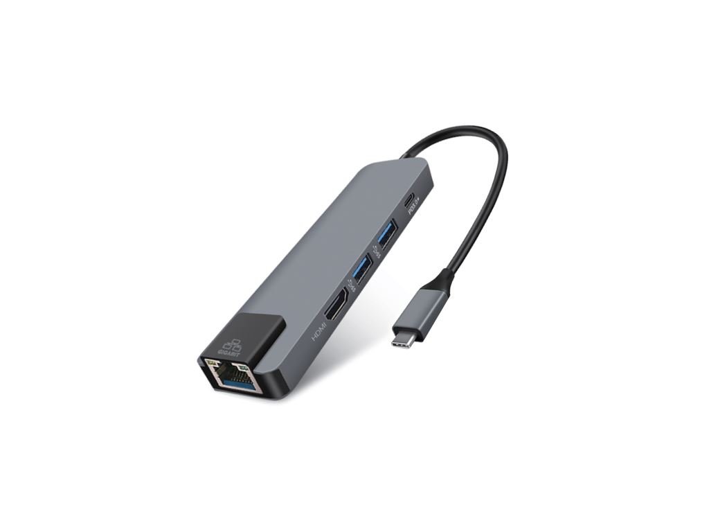 Adapter USB-C x HDMI/3x USB/LAN port - szary