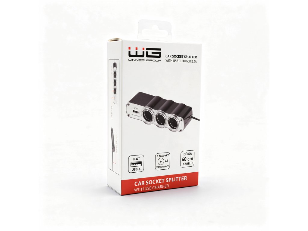 Praktická rozdvojka do autozásuvky s USB nabíjecím portem vám umožní pohodlně napájet a nabíjet až čtyři zařízení současně – tři pomocí standardních autozásuvek (zapalovačových) a jedno přes USB port s výstupem 5V/2.4A. Ideální doplněk pro osobní i nákladní automobily, karavany či kamiony.