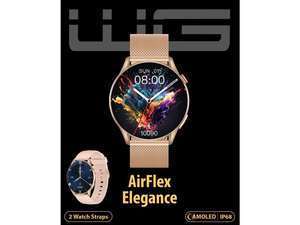 - Moderní design: Růžová barva dodává hodinkám AirFlex Elagance moderní vzhled, který lze snadno sladit s různými styly a příležitostmi.