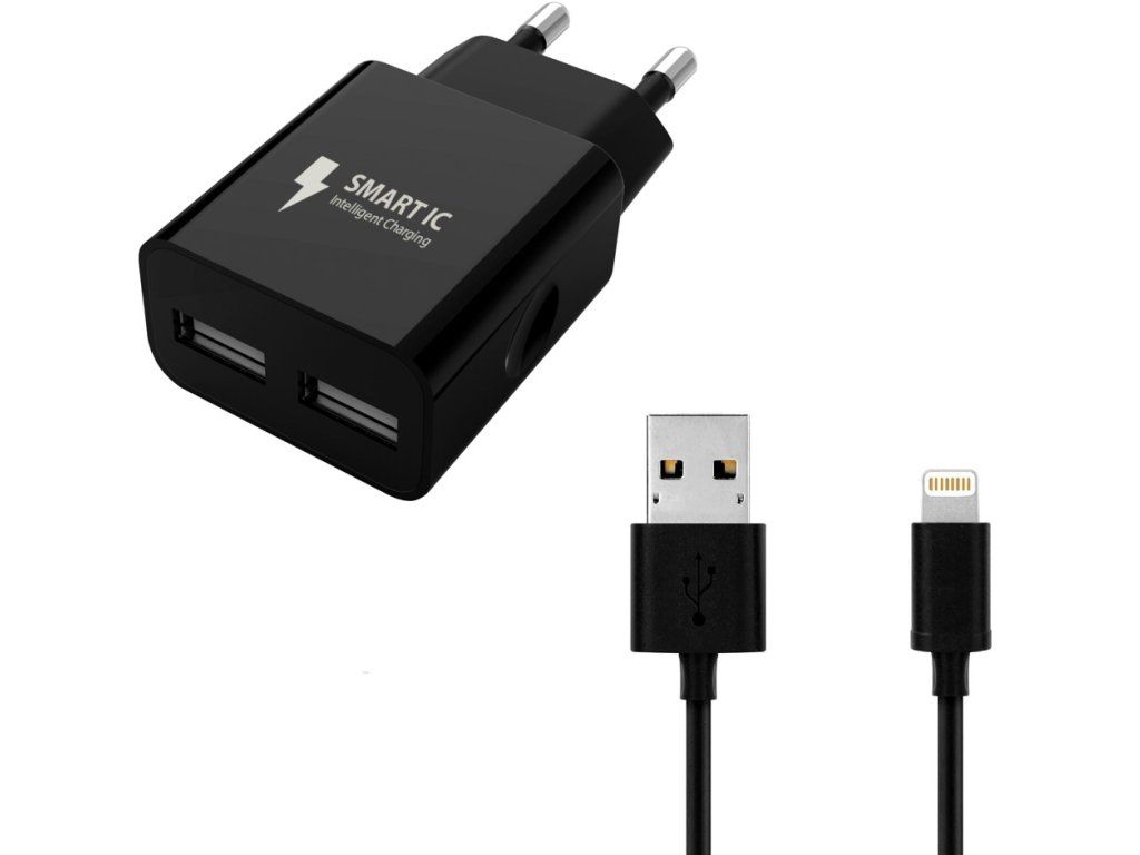 Síťová nabíječka 2x USB 2,4A + kabel Lightning - černá