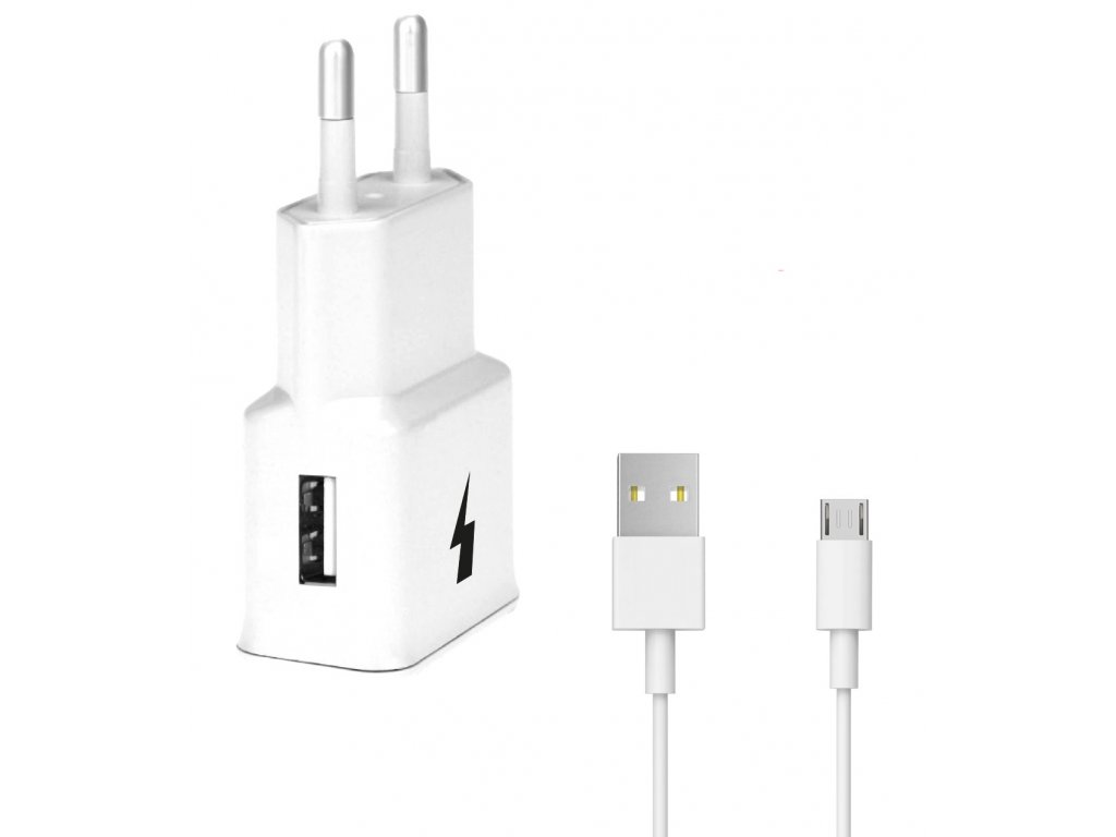 Síťová nabíječka FAST 1x USB 15W + kabel MICRO USB - bílá