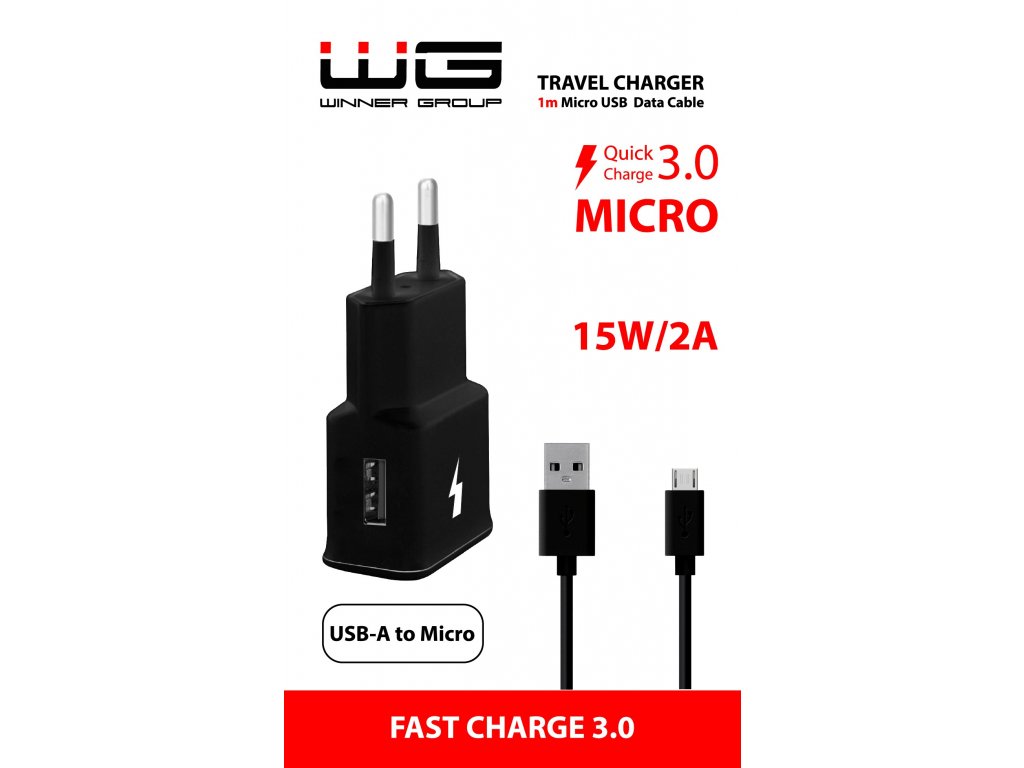 Síťová nabíječka FAST 1x USB 18W + kabel MICRO USB - černá