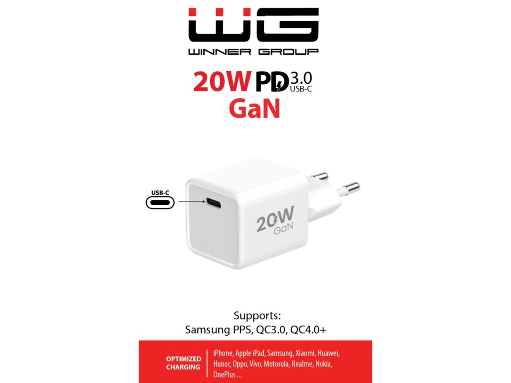Síťová nabíječka GaN 1x USB-C 20W - bílá
