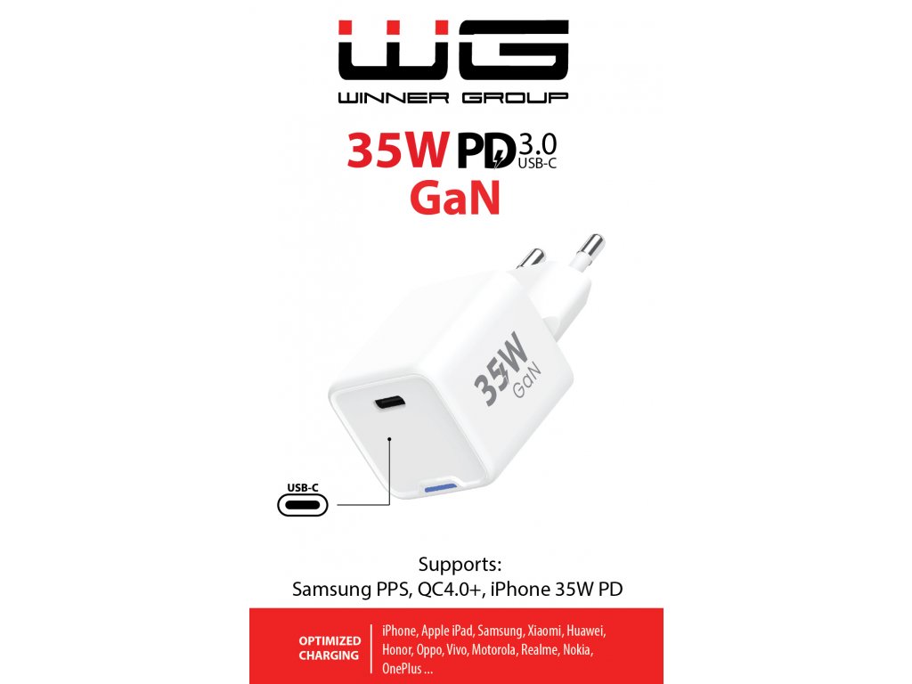 Síťová nabíječka GaN 35W je kompaktní, výkonná a odolná proti přehřívání. Díky duálnímu výstupu USB-C a USB-A nabízí široké možnosti využití pro smartphony, tablety i další elektroniku.