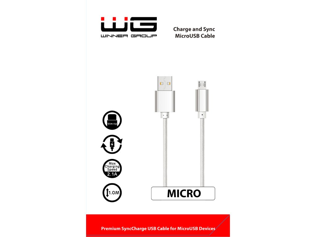 Datový kabel USB-A x Micro USB 1m 2.1A - stříbrný